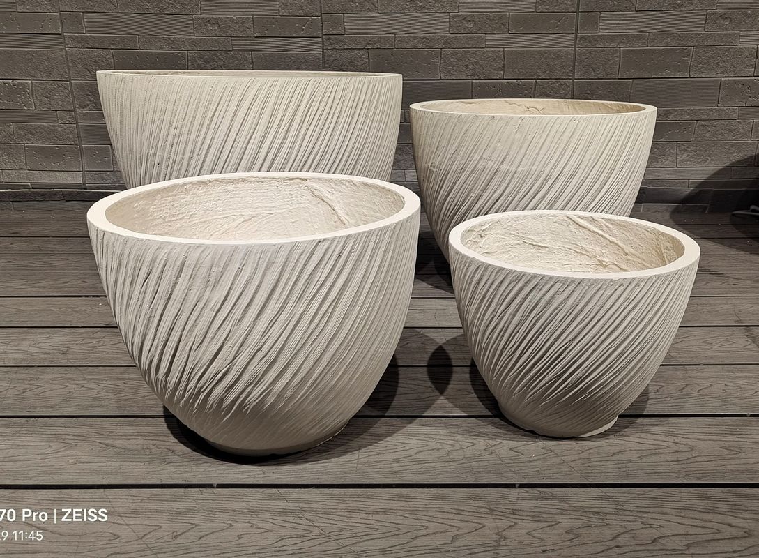 Кашпо из фиброглины имеет текстурированную поверхность, которая добавляет нотку сдержанной элегантности, помогая создать визуальный баланс и эстетическую гармонию в любом пространстве.